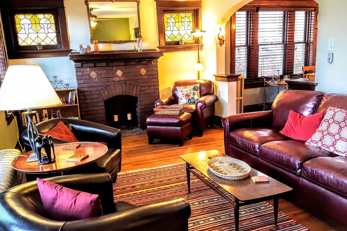 - ...don't mind some 1920s style. Our buildings were built in 1925, so yes, they are old. We have some creaky floors and some thin walls, but we also have stylish stained glass, arched walls between the living and dining rooms, and lovely trim and baseboards. One of our units -- the Sparrow Suite -- even has some original lighting fixtures!